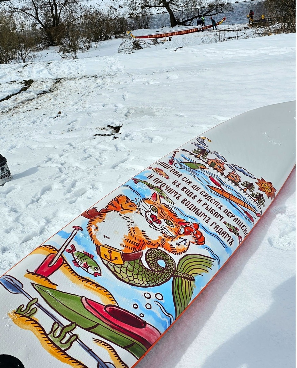 История сотворения Кота, о котором так много пишут в саперских чатиках, от автора дизайна – знаменитейшей мультигоншицы и чемпионки Настасьи Сановны. Если вы видели где-нибудь на реке большой сап-тандем с лубковым котом, то это – тоже я. Пишет мне как-то Стас, мол, нам нужна иллюстрация для сапа. Можешь? А я что? Я конечно могу. Порисовать за деньги я всегда большой мастак. Сначала ТЗ было туманное, что-то про пиковую даму, тройку, семёрку и туз... Но потом вдруг резко изменилось на бескомпромиссное: "лубочный кот, смотрит туда, показывает пальцем сюда, и вот так-то делает и надписи" словом, было невнятное ТЗ с простором для творчества, стало суперчеткое и без оного, что в общем-то неплохо. Осталось только поискать лубки, котов и нарисовать... Ага, щаз! Вот мы и нащупали тонкую грань между дизайном и иллюстрацией. Сап длинный и большой, но на нем есть всякие ковры, ручки, резинки и прочие клапана. Место под иллюстрации сразу из огромного полигона сжимается до непонятной параболы набито