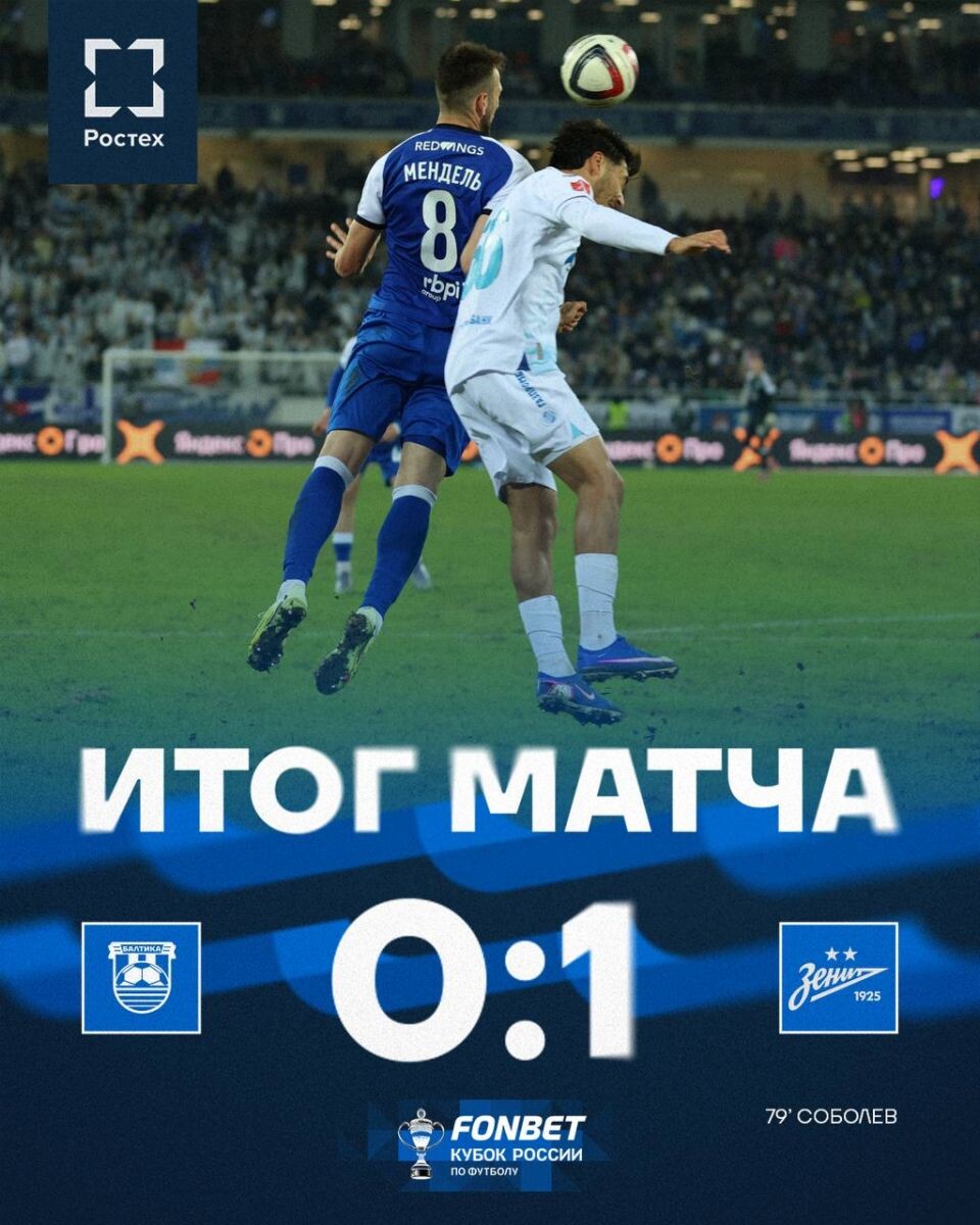 "Балтика" уступает "Зениту" в четвертьфинале Кубка России и завершает выступление в турнире