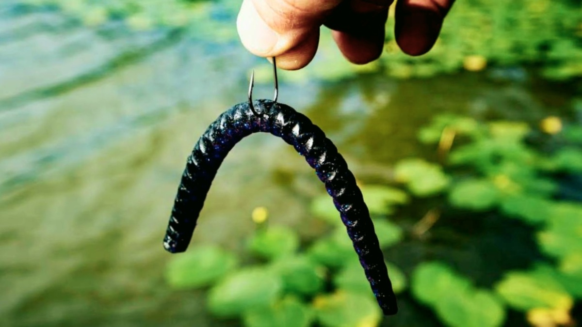 Прошлым летом я три часа долбил окуневую точку - джиг, вертушки, воблеры. Ноль. Рядом парень методично таскал окуней одного за другим. Я смотрел на его снасть и не мог понять что это вообще такое. Червяк на крючке, торчащем из середины. Никакого груза. Просто падает в воду и медленно тонет. Подошел, спросил. Он говорит: "Вэки. Слышал про такое?" Я честно сказал - нет. Он объяснил за пять минут. Я тут же собрал такую же оснастку на запасном удилище - и через десять минут вытащил первого окуня. С тех пор вэки всегда в коробке. Особенно когда все остальное молчит. Вэки - это силиконовый червь длиной 10-15 см с крючком, воткнутым строго в середину тела. Не с головы, не с хвоста - именно в центр. При падении оба конца червя свободно колышутся и вибрируют - это имитирует живого червя или пиявку в свободном падении. Главный секрет вэки - это пауза. Рыба атакует не при проводке, а при медленном планирующем падении. Хищник видит беспомощно извивающийся силикон - и не может устоять. Именно поэто