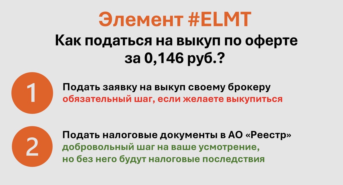 Т.е. если у вас в портфеле есть ELMT, то можете продолжить держать его, проигнорировав оферту.