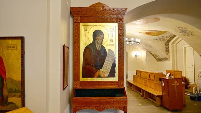 В московском Даниловом монастыре, в храме в честь Рождества Иоанна Предтечи, есть икона и бархатный, расшитый золотом башмачок греческого святого — преподобного Герасима Кефалонийского. Они являются единственными святынями преподобного, находящимися в Москве.
