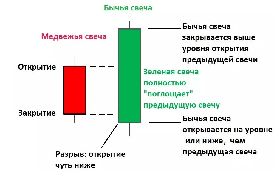 Главное — тело второй свечи должно полностью перекрывать тело первой.