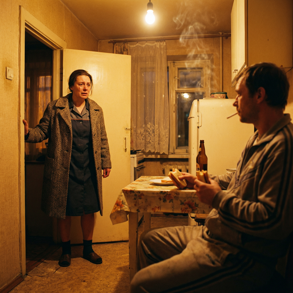 Марина отступила на шаг. Посмотрела на него — внимательно, как будто видела первый раз. Мятая футболка, самодовольный взгляд, рука с бутербродом.
