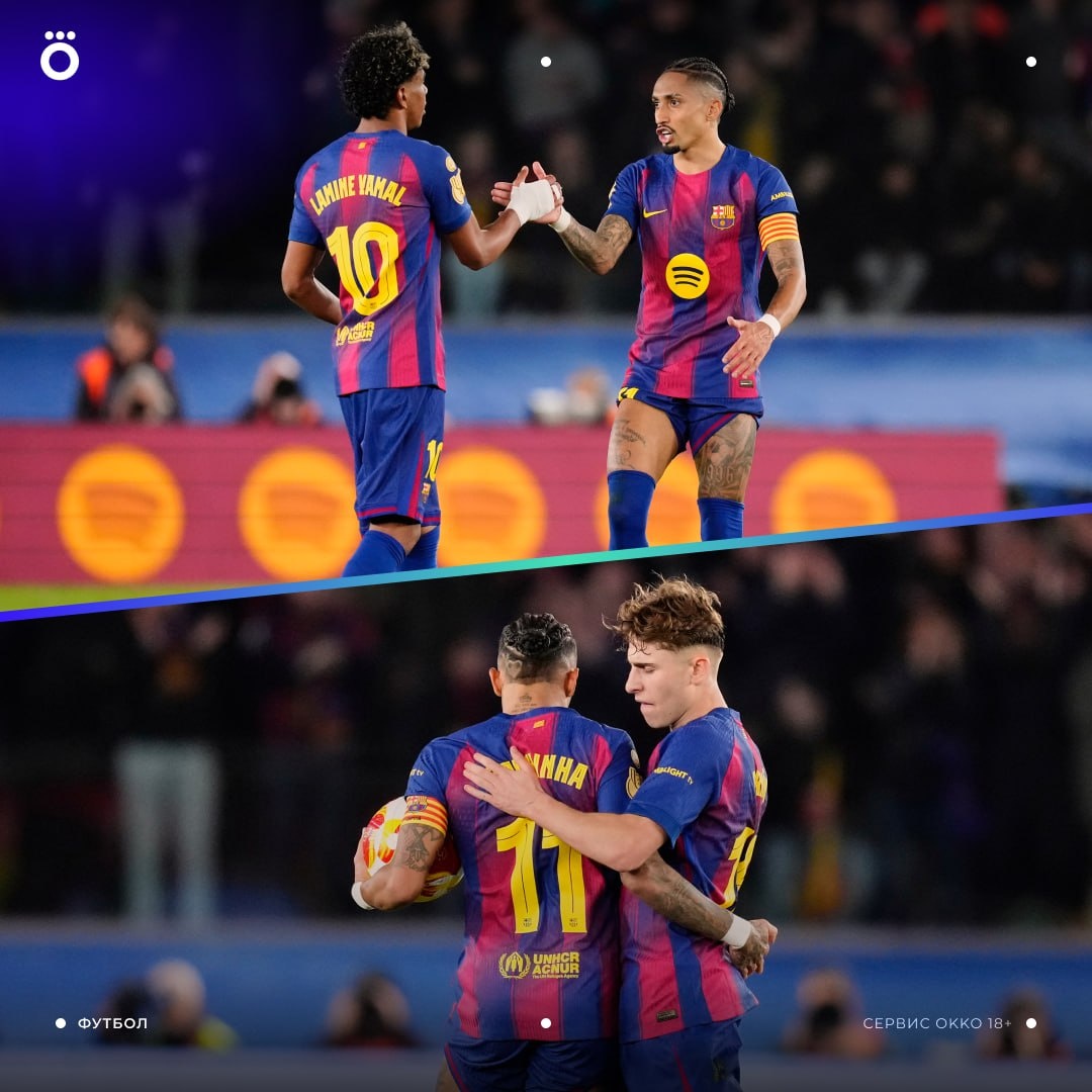 «Барселона» — в шаге от камбэка: после 1-го тайма ответного полуфинала Кубка Испании против «Атлетико» каталонцы ведут 2:0 💪🏻