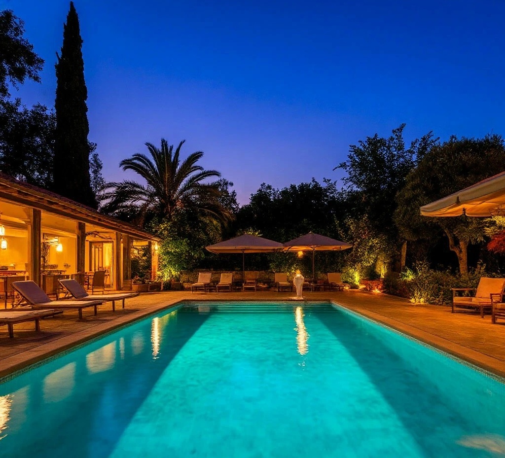 Парилка, бассейн имелся. Комната для отдыха с телевизором, музыкой.