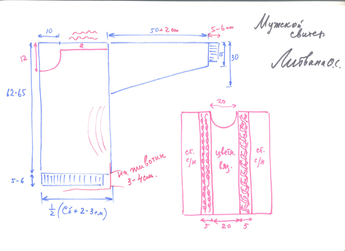 Вяжите свитер по выкройке с цельнокройным рукавом. Как построить выкройку вы можете посмотреть на моём канале в плейлисте "Учебный". Мужское изделие должно быть свободным и просторным.