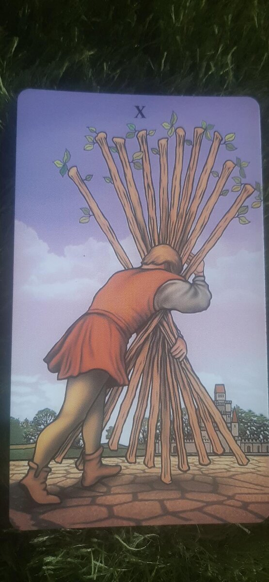 Десятка Жезлов не требует героического рывка к финишу. Она требует честного признания: я взял слишком много. Я не справляюсь. Я больше не могу. И это признание — не поражение, а единственно возможная победа над собственной гордыней. Теневая сторона — коллапс, внезапная остановка, когда тело или психика просто отказываются работать. Инфаркт, истерика, увольнение «в никуда», разрыв отношений — это не осознанное сбрасывание груза, а крушение под его весом. Задача Десятки — не допустить Башни. Сбросить вовремя, пока вы ещё можете выбирать, что оставить, а что отдать. ---
