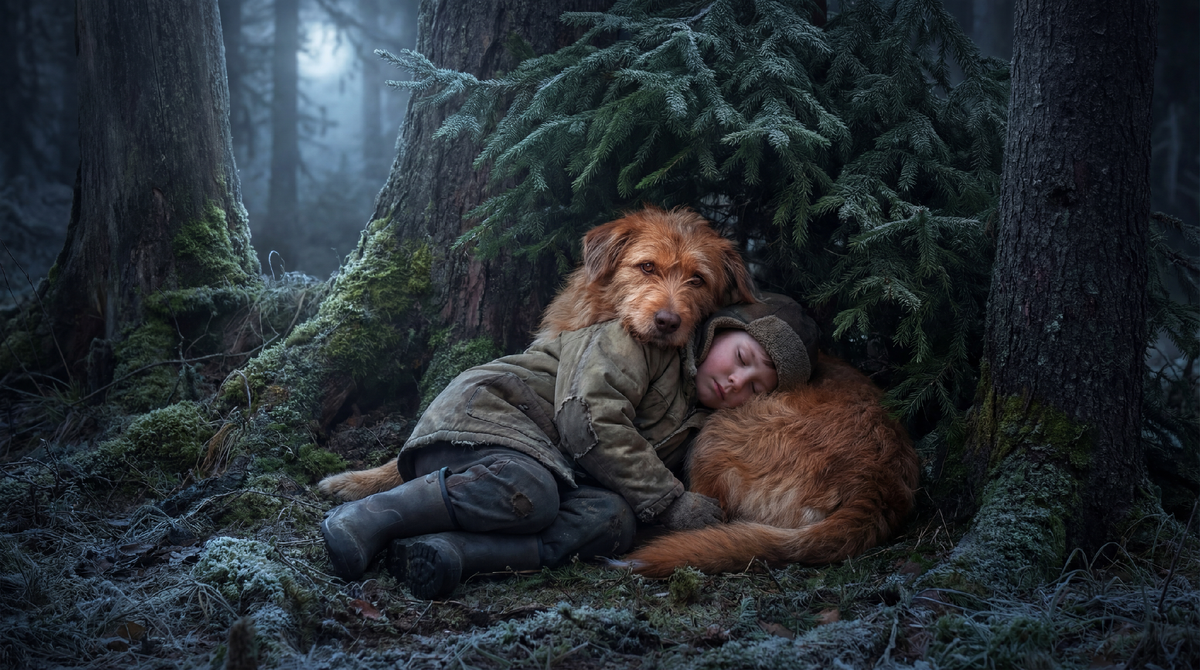 Я закрыл глаза. Представил, как Лайка услышала плач в темноте леса, побежала туда. Нашла маленького мальчика, испуганного, замёрзшего. Легла рядом, прижалась к нему, чтобы согреть. Всю ночь. На холоде, под открытым небом. Не ушла, не бросила.