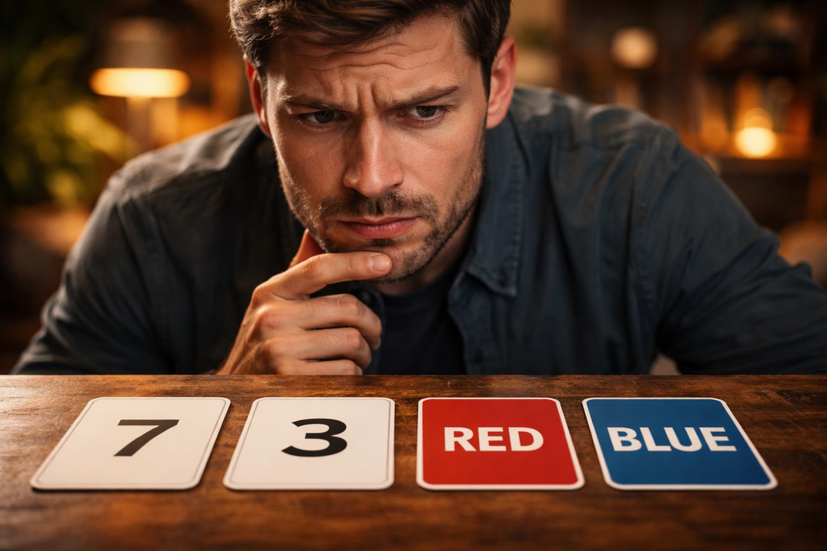 Представьте, что перед вами на столе лежат четыре карточки. На каждой из них с одной стороны написана цифра, а на другой - цвет. Вы видите следующие значения: «8», «5», «Красная» и «Синяя». У вас есть правило, которое нужно проверить: «Если на одной стороне карточки четное число, то на другой стороне она красная».