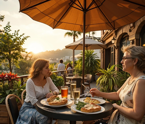 Вчерашний день выдался на редкость томным и ленивым. После обеда мы с женой решили совершить небольшую вылазку в город, не имея конкретной цели, просто чтобы развеяться. Жара спала, и легкий ветерок приятно обдувал лицо. Выбор пал на небольшое кафе с открытой террасой, утопающей в зелени. Мы устроились за столиком под большим зонтиком, спасавшим от последних лучей заходящего солнца, и заказали по порции куриных котлет с картофельным пюре – простую, но такую любимую домашнюю еду.