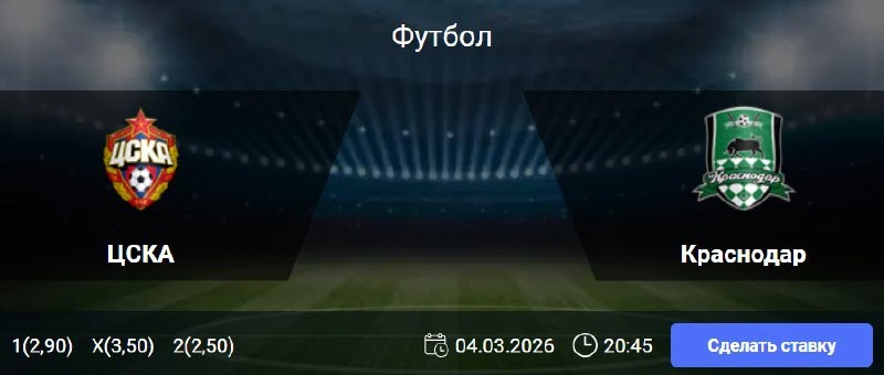 ) Статистика ЦСКА: Статистика указывает на прагматичный стиль армейцев: в 26 из 27 последних игр команды в Кубке России забивалось не более трех мячей. В родных стенах ЦСКА демонстрирует впечатляющую стабильность, не проигрывая в основное время на протяжении 15 встреч (10 побед и 5 ничьих). При этом атака хозяев работает исправно: в шести из семи предыдущих домашних матчей турнира команда забивала минимум два гола. Статистика Краснодара: Матчи с участием «быков» традиционно богаты на голы: как минимум три взятия ворот фиксировалось в 11 из 12 последних кубковых встреч. На выезде команда не знает поражений в турнире уже пять матчей кряду, однако проблемы в защите сохраняются, «Краснодар» пропускал в шести из семи предыдущих гостевых поединков. 🎯 ТМ (2,5) 🎲 кф (1,91) 🎯 1X 🎲 кф (1,56) 🎯 1X и ТМ (2,5) 🎲 кф (2,50) 👉 СДЕЛАТЬ СТАВКУ 🎁 ФРИБЕТ WINLINE - 3000₽ (промокод: BETWIN) 👉 СМОТРЕТЬ ПРОГНОЗ