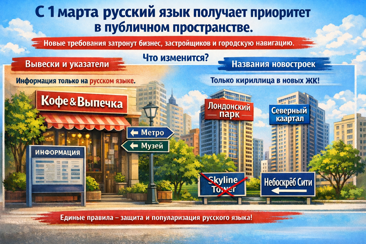 Кириллица в приоритете: что меняется в вывесках и названиях новостроек с 1 марта 2026 года