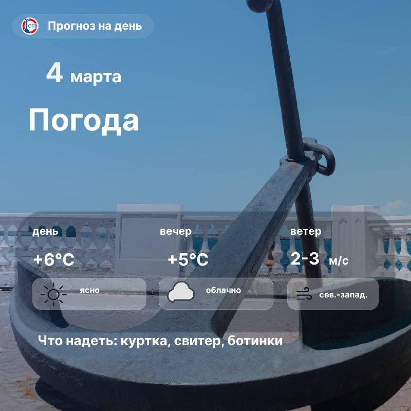 Доброе утро, севастопольцы! Сегодня днем в городе ясно, но прохладно. Температура днем до +6℃. Пусть тепло живет в сердце!