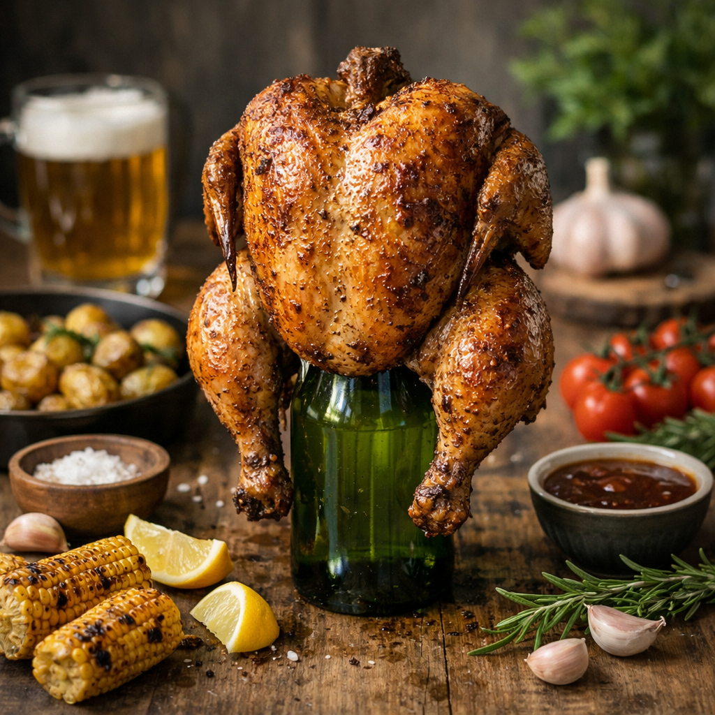 О, запечённая курица на бутылке — это такая классика, которая всегда выглядит эффектно и невероятно сочной!