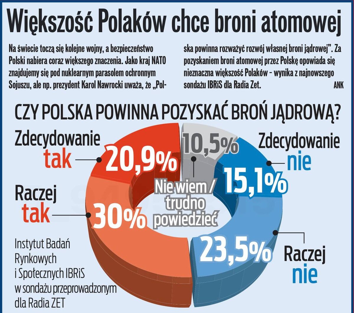 Согласно свежему опросу IBRiS, 50,9% поляков поддерживают эту идею, 38,6% выступают против. Ну что ж, согласно известному сценарию, мы уже можем заявлять: «Россия никогда не позволит Польше иметь свою ядерную бомбу!» А дальше мы все знаем, что должно последовать - США в Иране показали, как это работает. Сальное Дифлопэ