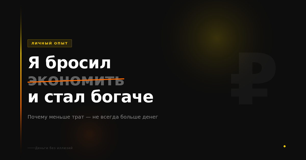 Несколько лет я жил по правилу: трать меньше — будешь богаче. Вёл таблицы расходов, отказывался от кафе, покупал самое дешёвое. Результат? Деньги всё равно кончались. А ещё я был раздражительным и чувствовал себя нищим — при вполне нормальной зарплате.