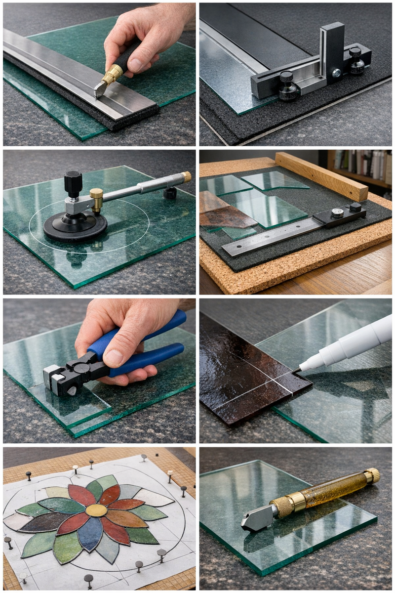 Ровная резка стекла — это не просто этап работы. Это фундамент, от которого зависит, будет ли в итоге аккуратный витражный светильник, авторская перегородка или действительно уникальный предмет интерьера, который хочется купить, а не переделывать. Если вы создаёте или только планируете создавать изделия из стекла — будь то витражи Тиффани, декоративные панели или интерьерные светильники — эти приспособления сэкономят вам десятки часов и сотни испорченных деталей. Задача: идеально прямая линия без «ухода» стеклореза.