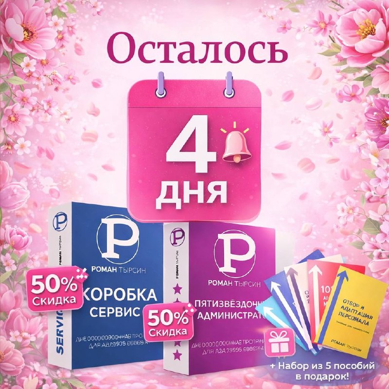 Через четыре дня весенние скидки просто завянут. И вместе с ними исчезнет возможность забрать программы со скидкой –50%. Сейчас ещё действует: 🔥 –50% на «Коробку Сервиса» — обучение всей команды онлайн — стандарты сервиса — рост возврата клиентов 🔥 –50% на курс «Пятизвёздочный администратор» — больше продаж — рост среднего чека — уверенный ресепшен И дополнительно 👇 🎁 5 практических пособий в подарок Но давайте сделаем проще. Не нужно ничего решать прямо сейчас. Просто напишите в личные сообщения одно слово: ВЕСНА 🌸 Я отправлю подробности акции, и вы спокойно посмотрите, подходит вам это или нет. Но важно успеть. Потому что через 4 дня весенние скидки… завянут. 👉 Просто напишите ВЕСНА — я отвечу лично.