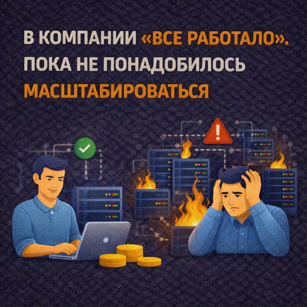 Запустили новый проект – и выяснилось, что система не выдерживает нагрузку. ИТ вдруг перестает быть фоном. Оно становится тормозом. Самая частая реакция собственника: «Но мы же работали так 5 лет». Да. Работали.