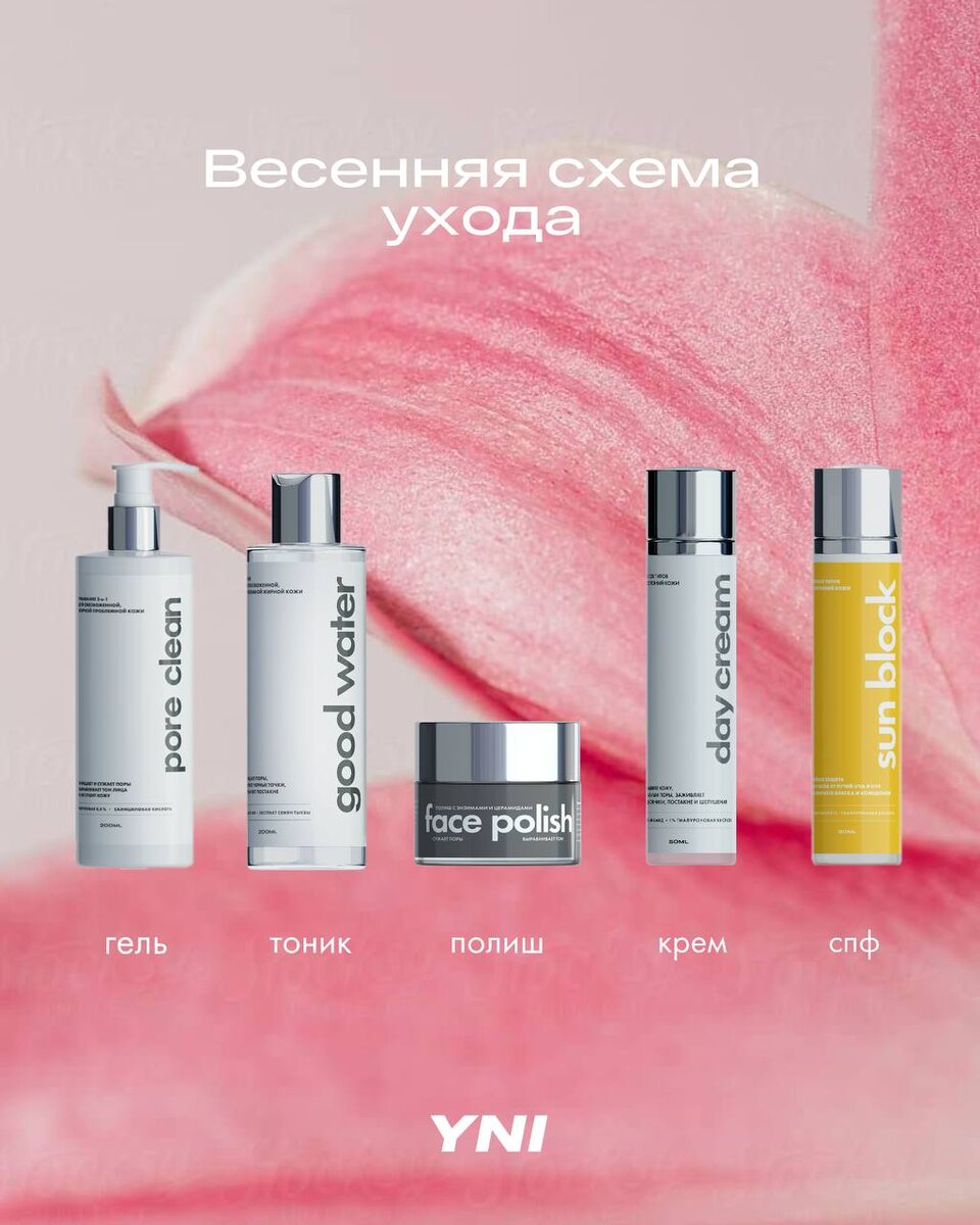 🤍 Весна — это не просто «снять шапку». Это момент, когда кожа тоже хочет сменить режим. ❄️ Зимой мы делали ставку на плотность, питание и восстановление барьера. 🌸Весной — меняется всё: влажность, уровень солнца, активность сальных желёз. Кожа чаще становится комбинированной, поры заметнее, появляется тусклость. Значит, и уход должен стать легче, но умнее. Вот рабочая весенняя схема👇 🫧Очищение без пересушивания Pore Clean с феруловой кислотой — мягкий гель, который убирает себум и загрязнения, но не «смывает лицо до скрипа». Феруловая кислота — антиоксидант. Весной это особенно важно: солнце активнее, окислительный стресс выше. Мы не просто очищаем, а сразу добавляем защиту. 🫧Баланс и подготовка Good Water — тот самый этап, который многие пропускают, а зря. Тоник выравнивает pH после умывания, помогает коже лучше принимать крем и снижает ощущение стянутости. Весной кожа часто ведёт себя нестабильно — этот шаг возвращает её «в норму». 🫧Обновление текстуры 1–2 раза в неде