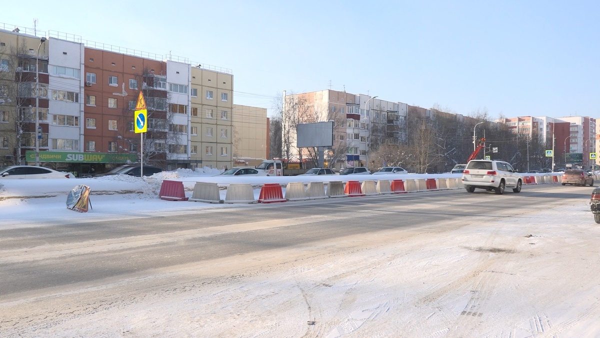 На проспекте Ленина в Сургуте перекрыли полосу движения