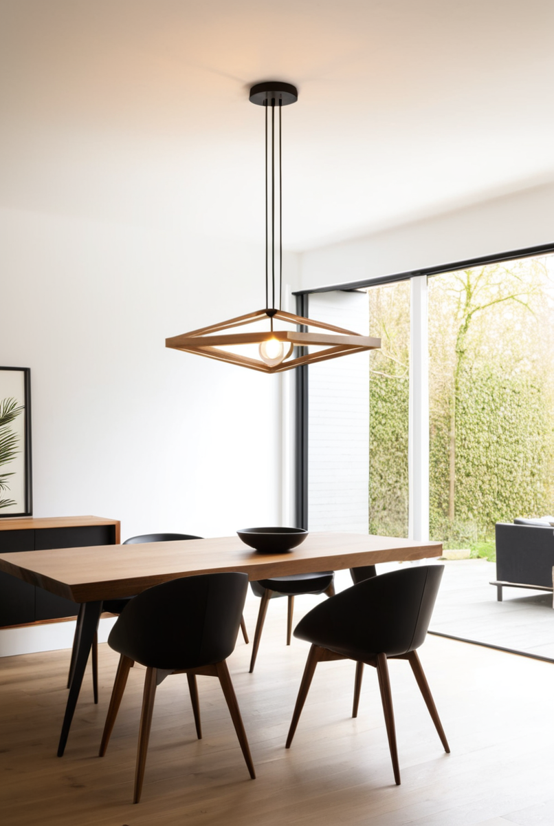 Важно соблюдать оптимальное расстояние до пола — не менее 2,1 метра, чтобы не мешать проходу. Для помещений, где низкий потолок, идеальным решением станет светильник с минимальной длиной штанги, который визуально не перегрузит пространство.
