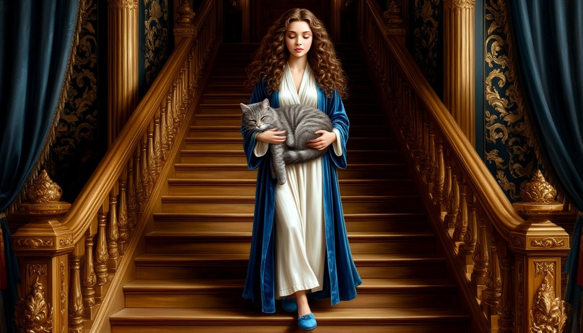 Он медленно и не без труда подтянул ноги к себе, открыв ей проход. Принцесса начала спускаться, но вдруг передумала ― присела рядом с ранеными и измученными демонами на ступеньку и обняла за плечи того, который хотя бы выглядел в этот момент как человек. Её густые длинные волосы тёплым облаком накрыли грудь и колени владыки Лина, спрятав заодно и поверженного кота.