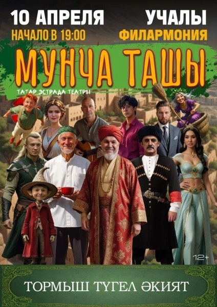 У нас в гостях Легендарный театр эстрады и юмора «Мунча ташы» с новой программой с оригинальным названием «Тормыш тугел экият» («Не жизнь, а сказка» или «Жизнь не сказка») подготовленной с учетом лучших традиций татарской и башкирской сатиры, новых эстрадных приемов, свойственных только искрометному театру «Мунча ташы». На концерте будут показаны короткие юмористические миниатюры на злободневные темы наших реалий от самых известных и любимых артистов театра! Зрителей ожидает неожиданные сюжетные повороты, лирические песни, веселые танцы, монологи и юморески, обработанные сценическими приемами. Добро пожаловать на новую зажигательную концертную программу театра «Мунча ташы» за своей порцией позитива и зарядитесь энергией и хорошим настроением на много дней вперёд! Нач. 19:00 Билеты в продаже в кассе Учалинской филармонии, цена 1200 р. Касса работает в будние дни с 10:00 до 19:00, перерыв14:00-15:00 Билеты онлайн —… https://uchaly102.ru/?p=128026