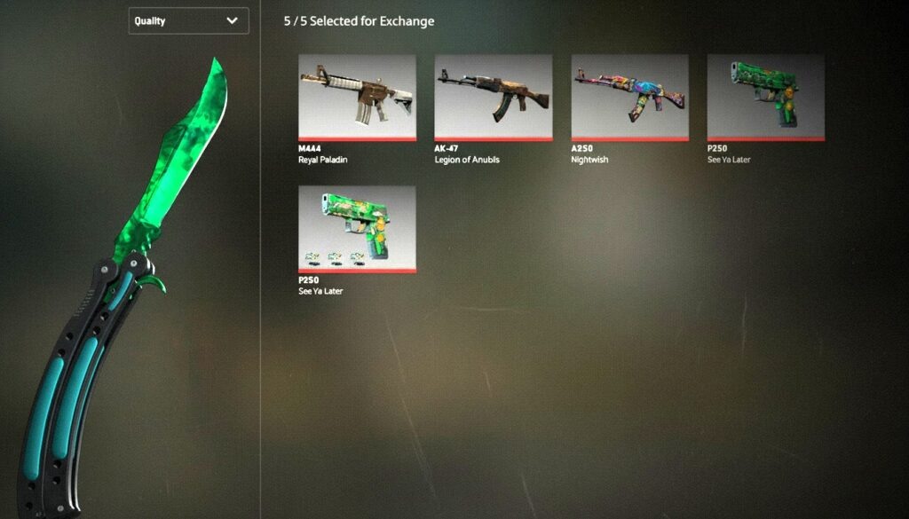 Суть изменений гениальна в своей простоте, но разрушительна для старых стратегий. Теперь игроки могут обменять 5 тайных скинов (красных) на один эксклюзивный золотой скин с редкими ножами и перчатками. Пять предметов уничтожаются ради создания одного.