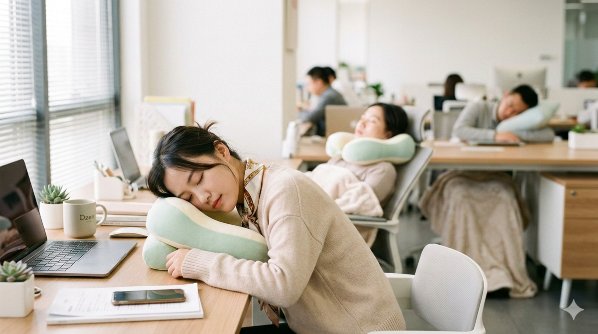 Представьте: часы показывают ровно 13:00. В пекинском офисе гаснет свет, опускаются жалюзи, и сотни людей достают раскладушки, подушки и пледы. Через пять минут помещение превращается в спальню: кто-то посапывает на массажном кресле, кто-то уткнулся в мягкую игрушку на столе. И никто не считает это странным.