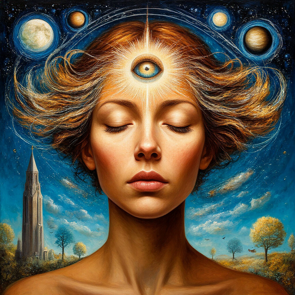 Бывало ли с вами такое? Вы "просто знаете", что не надо садиться в этот поезд — и он опаздывает на три часа. Вам снится разбитая чашка — а наутро ребёнок роняет со стола любимую кружку. И вы стоите посреди кухни, смотрите на осколки и думаете: "Ну вот, опять. Я же видел". Видел. Именно — видел. Но чем? Я не буду грузить вас санскритом, чакрами и словом "просветление". Поговорим о том, что это за штука - третий глаз-, почему она есть у каждого и почему большинство из нас ею не пользуется. Хотя она работает. Просто мы не обращаем внимания. Представьте, что у вас в голове есть маленький кинозал. Очень личный, очень тихий. Экран — где-то за лбом, чуть выше переносицы. И на этом экране время от времени мелькают кадры. Не мысли — именно картинки. Иногда чёткие, как фотография. Иногда размытые, как сон, который ускользает, стоит открыть глаза. Вот это и есть третий глаз. Не рог единорога на лбу и не мистический лазер из головы. А способность видеть внутренним зрением то, что обычными глазам