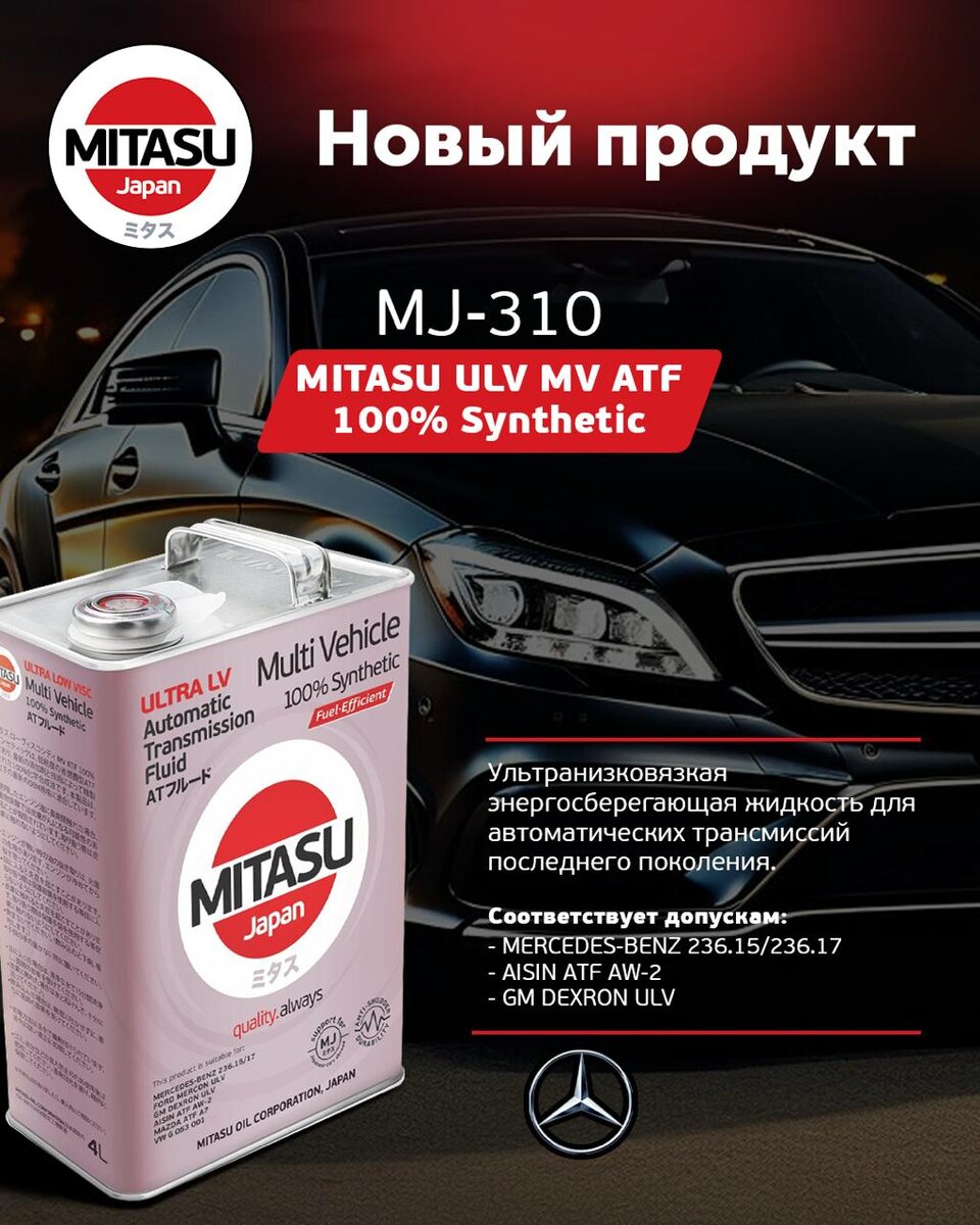 ! MITASU ULV MV ATF 100% Synthetic (MJ-310) — полностью синтетическая ультранизковязкая энергосберегающая жидкость для автоматических трансмиссий последнего поколения. Главный акцент — соответствие ключевым допускам: • MERCEDES-BENZ 236.15 / 236.17 • AISIN ATF AW-2 • GM DEXRON ULV • FORD MERCON ULV Оптимальное решение для современных 7–10-ступенчатых АКПП европейских, американских и азиатских автомобилей. ⚙ Ультранизкая вязкость — стандарт новых поколений коробок передач. MITASU ULV MV ATF обеспечивает: • снижение гидравлических потерь • повышение топливной эффективности • корректную работу систем Start-Stop • стабильность при высоких нагрузках Индекс вязкости — 157 Температура застывания — −45°C ✔ Альтернатива OEM ✔ Антивибрационная устойчивость ✔ Защита от износа ✔ Совместимость с новейшими АКПП Новинка уже доступна к заказу в Ensola. Обращайтесь к менеджерам для подбора.