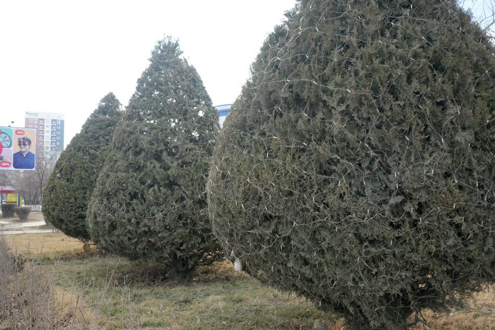 Уже март: жители Актау оказались недовольны оставшимися на деревьях новогодними украшениями