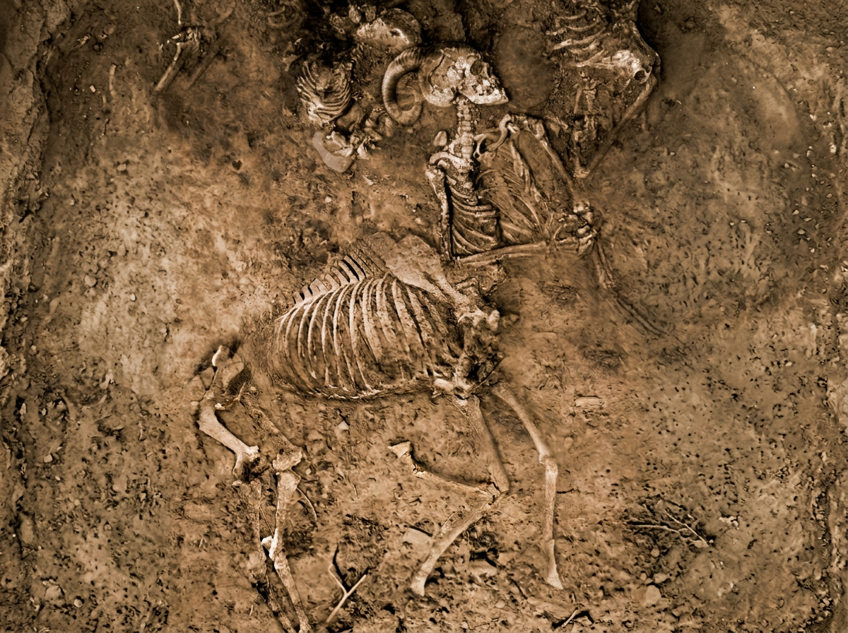На фотографии — скелет, лежащий в выемке грунта. Конские рёбра, лошадиный таз, а выше — человеческий позвоночник, лопатки, череп с массивными закрученными рогами. В 2015 году этот снимок разошёлся по десяткам сайтов на шести языках. Подписи утверждали одно — кости найдены на Кипре, им 2800 лет, ДНК совпадает, наука бессильна.