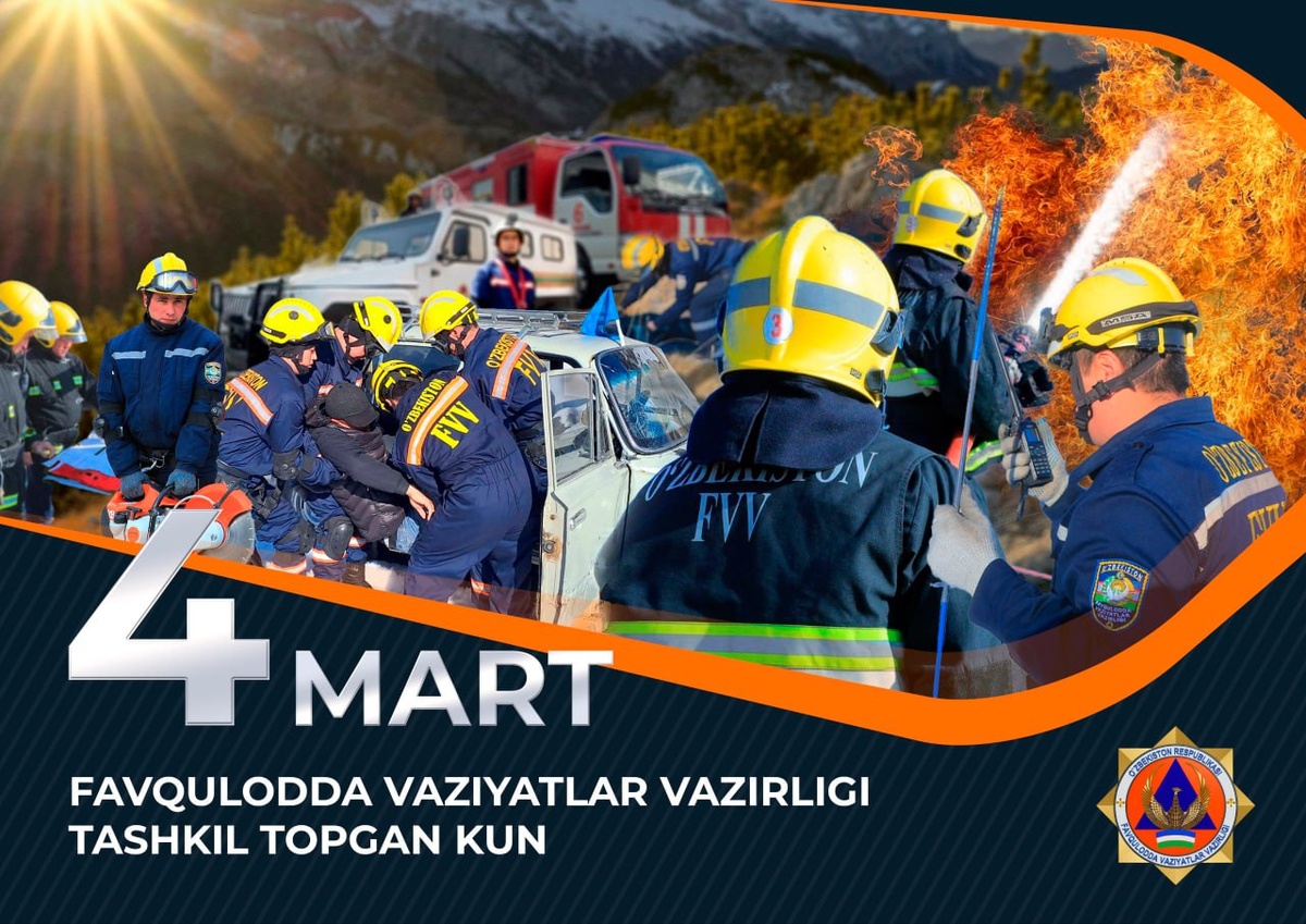 Фуқаро муҳофазаси йўлида доимо шай Ўзбекистон Республикаси Президентининг 1996 йил 4 мартдаги фармонига асосан Ўзбекистон Республикаси Фавқулодда вазиятлар вазирлиги ташкил қилинган эди. Ҳаётимизда кутилмаганда содир бўладиган турли вазиятлар, фалокатларда Фавқулодда вазиятлар вазирлиги тизимидаги қутқарув тузилмалари вакиллари биринчи бўлиб кўмакка шошилади. Батафсил Каналимизга обуна бўлинг ва энг сўнгги янгиликларни кузатиб боринг Jizzaxnews |Тelegram | Facebook | Dzen | YouTubе
