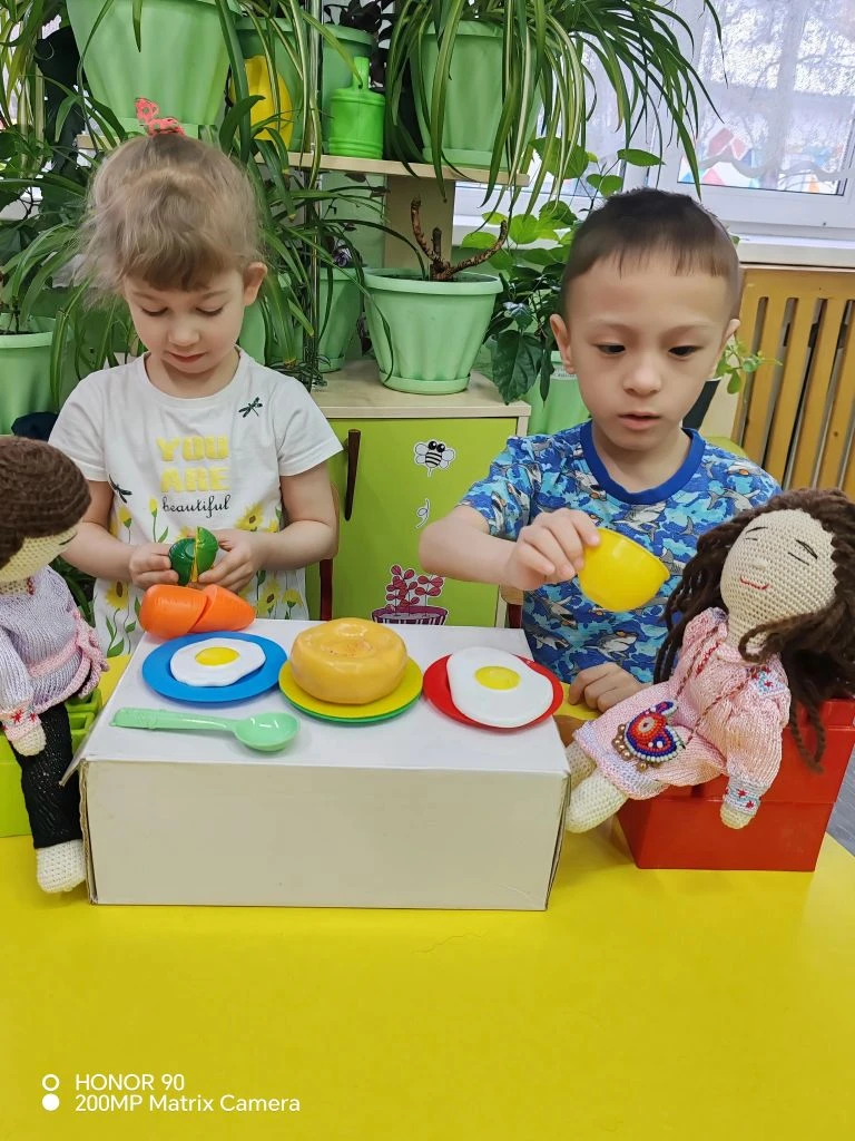 Детский мир Педагоги детского сада «Орленок» решили устроить для детей настоящее погружение в культуру, подчеркнув важность родного языка и национальных традиций. Ведь воспитанники нашего садика живут в многонациональном регионе: одни дети общаются на русском, другим ближе хакасский язык, а третьи дома слышат тувинскую, шорскую или иную родную речь. Чтобы заинтересовать детей родным языком и культурой разных народов, были разработаны специальные игровые занятия для каждой возрастной группы. В честь Дня родного языка с самыми младшими воспитанниками сада было решено провести игру «Семья» («Мама, папа»). Это самый понятный и близкий детям трех-четырех лет способ показать, как звучит родная речь в повседневной жизни, передать традиции общения и ласковые интонации. Кормя кукол Тарину и Аяс, ребята пытались приговаривать вместе с воспитателем «Сорока-ворона кашку варила, деток кормила». Поиграли в веселую игру «Хоор-хоор». Когда пришло время укладывать кукол спать, «мамы» с «папами» начали