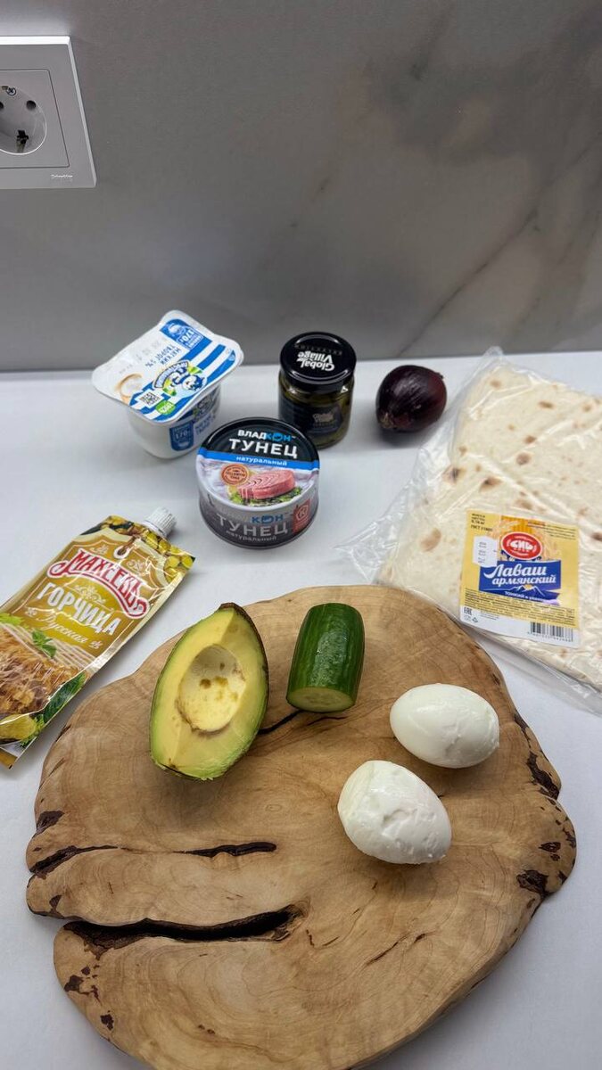 На завтрак приготовила ролл с тунцом, яйцом и авокадо. На одну порцию: – лаваш 70 гр. – тунец в с/с 70 гр. – авокадо 40 гр. – лук красный 15 гр. – яйца варёные 1-2 шт. – огурец свежий 30 гр. для соуса взяла мягкий творог, горчицу, каперсы и шрирачу капельку. Всё смешиваем, заворачиваем в лаваш и поджариваем с двух сторон на сухой сковороде. Очень, приочень 🤌🏼