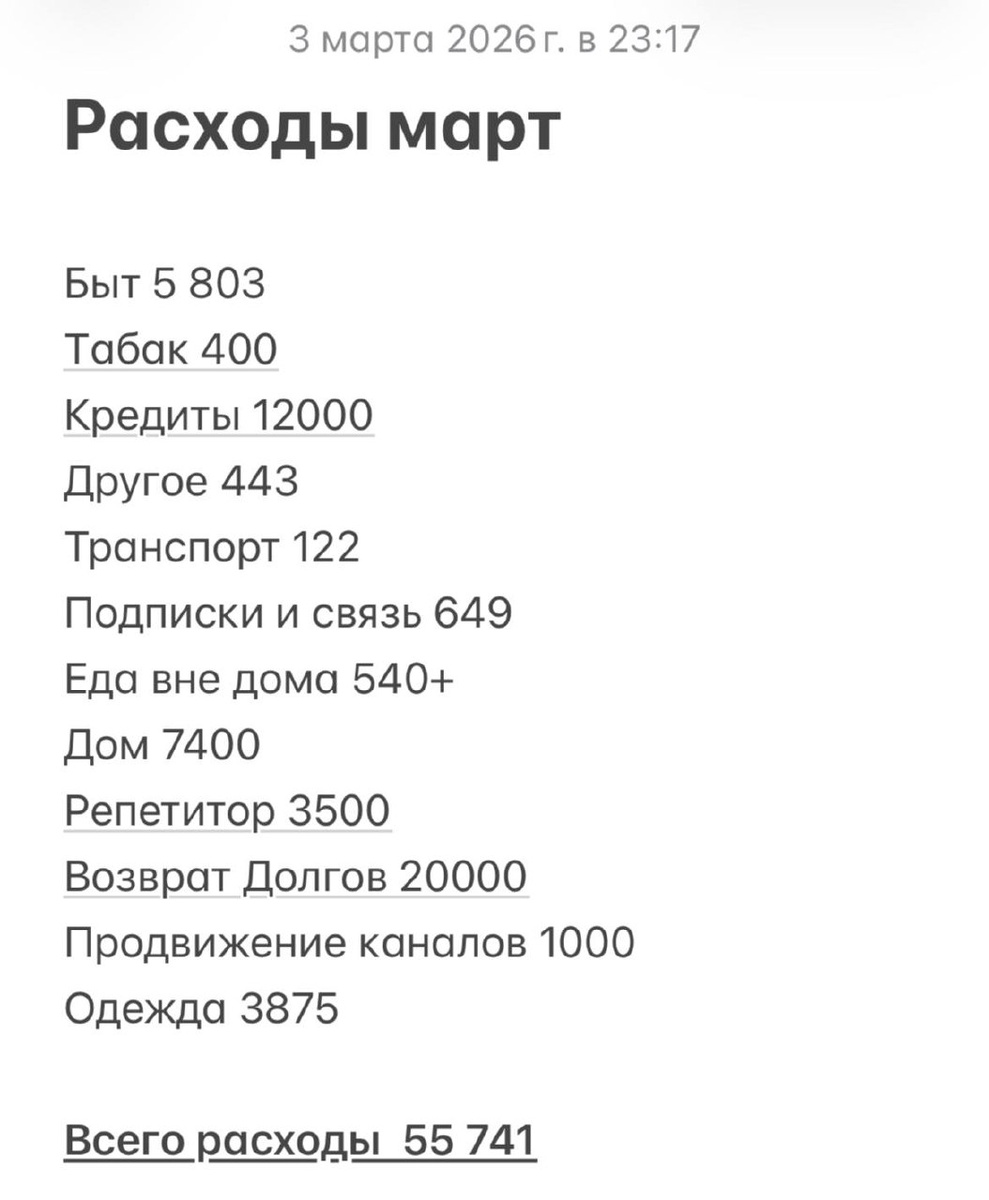 Или шок контент 🤣 Как видите за 3 дня потрачено 55 тыщ, из которых только 32 тыс пошли на погашение долгов, это и кредиты и занятые у физ лиц деньги. К остальным тратам я отношусь нормально.