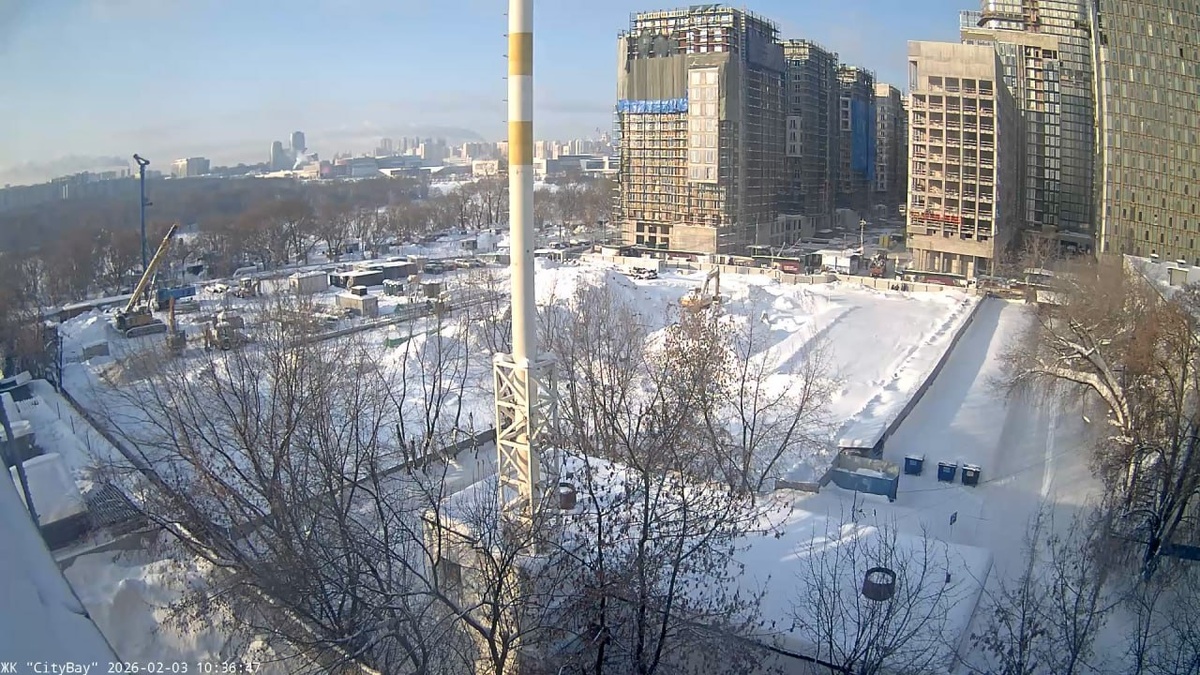 работы по формированию котлована. В зоне ещё одной доминанты пока без существенных изменений: пара буровых установок продолжает выполнять поставленные задачи + строительный городок немного увеличился в размерах. Вдоль береговой линии возобновлены работы по благоустройству набережной. Недавно здесь установили каркас небольшого причала. На месте будущих пешеходных маршрутов снова ведётся подготовка к монтажу соответствующего покрытия. На скриншотах изменения с 03 февраля по 04 марта. Камера 1 Камера 2 #citybay 😊 Небоскрёбы России в MAX