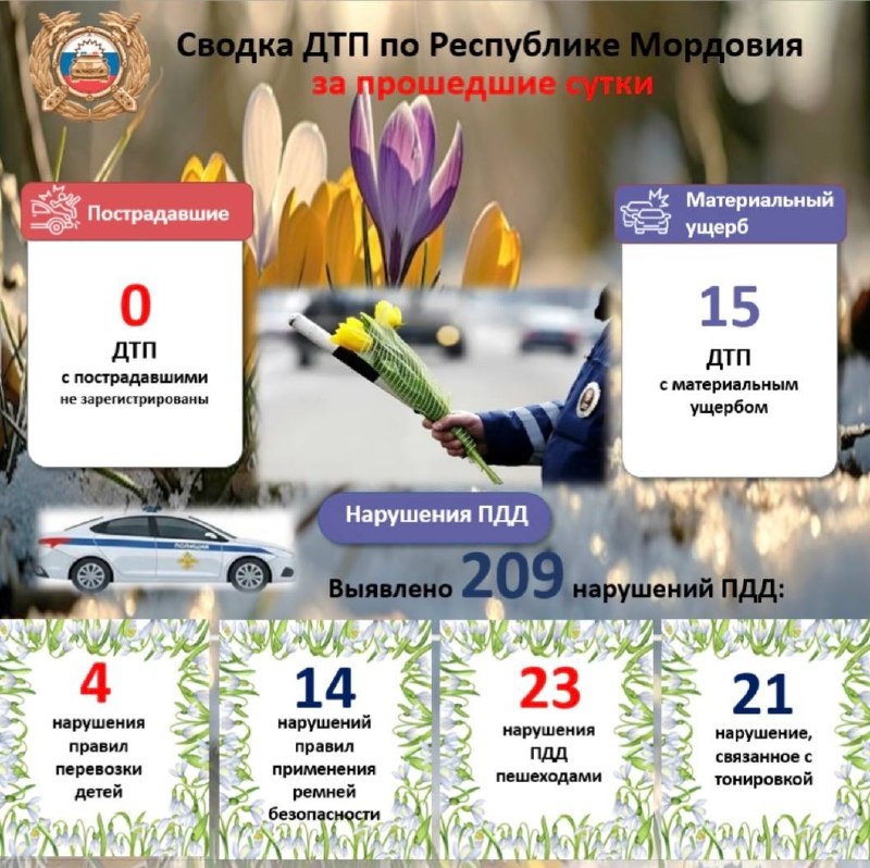 🚔 ГАИ Мордовии: 3 марта 2026 года на дорогах республики не зарегистрировано ни одного ДТП с пострадавшими в них людьми