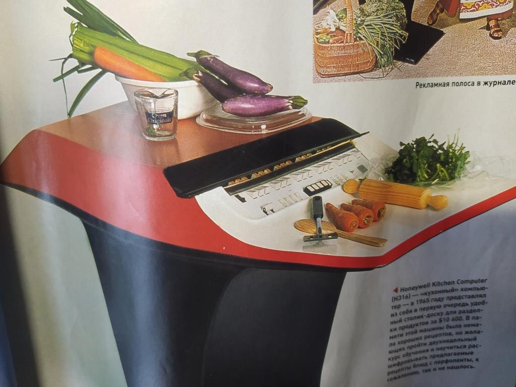Соединял в себе не только удобный столик, но и разделочную доску. Стоил он по тем временам баснословно много — $10600. А в его памяти было множество хороших рецептов, которые расшифровывались с (только не смейтесь:)) — с перфоленты.