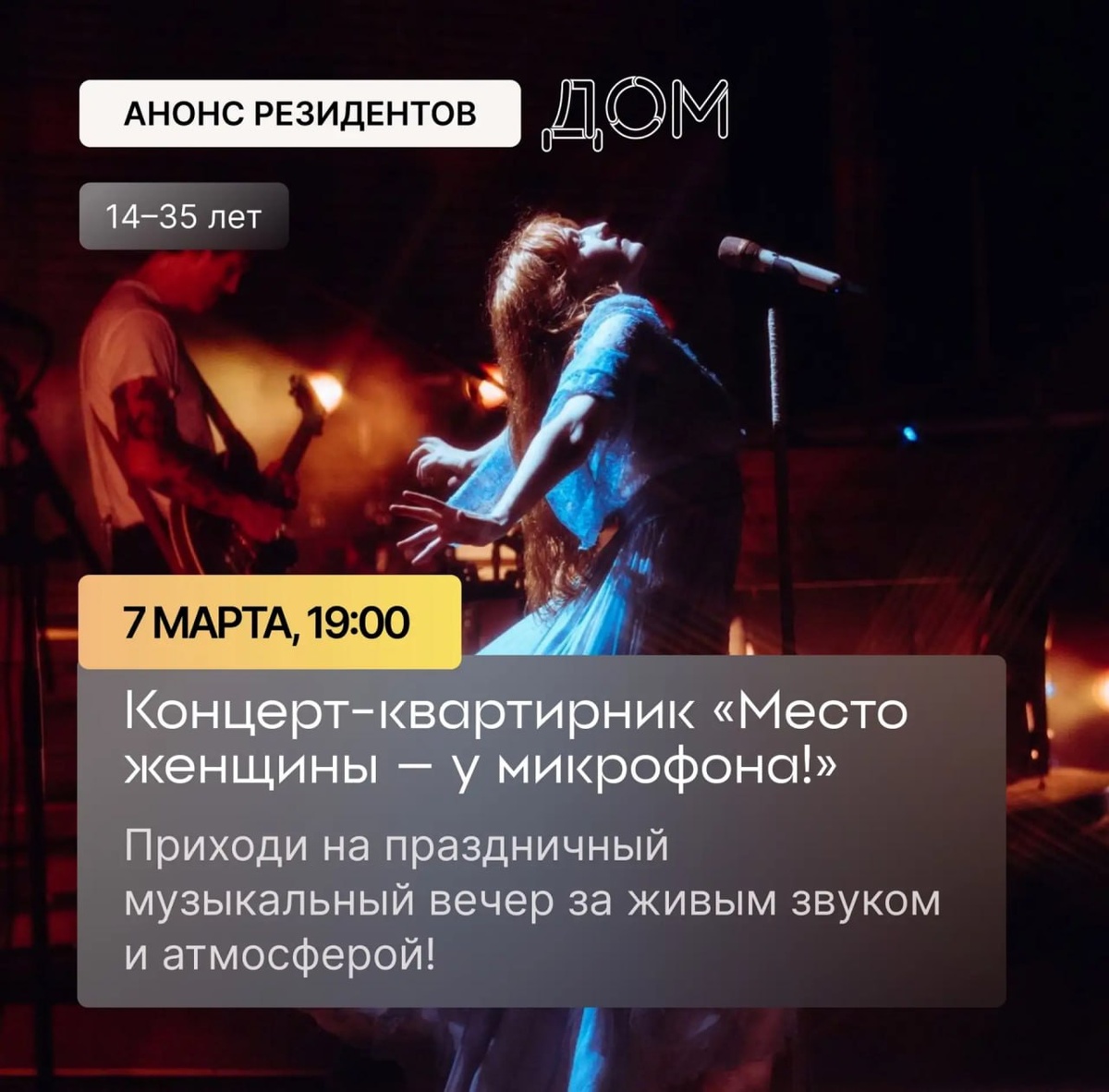 💫В Центре добрососедства театров «Дом» пройдет концерт-квартирник «Место женщины – у микрофона!» от театра «Angel Street» и театра