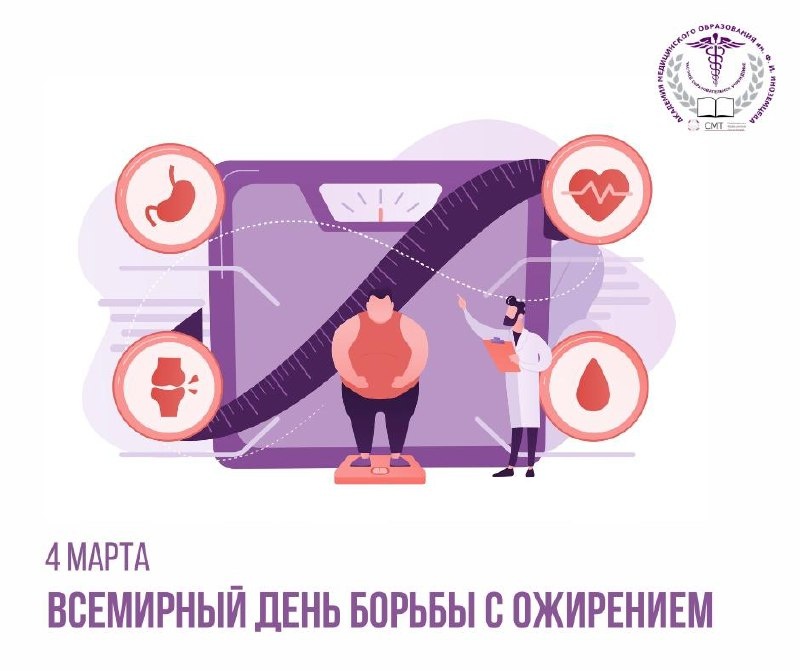 Этот день призван привлечь внимание к одной из самых актуальных проблем современного здравоохранения. Ожирение является хроническим заболеванием, которое значительно повышает риск развития многих патологий и снижает качество жизни пациентов. По данным Всемирной организации здравоохранения, число людей с избыточной массой тела и ожирением продолжает расти во всем мире. Избыточный вес связан с повышенным риском развития сахарного диабета 2 типа, сердечно-сосудистых заболеваний, гипертонической болезни и нарушений обмена веществ. В связи с этим особое значение приобретает профессиональная подготовка медицинских специалистов, которые работают с вопросами профилактики, диагностики и лечения метаболических нарушений. Академия медицинского образования имени Ф. И. Иноземцева реализует программы профессиональной переподготовки и повышения квалификации для медицинских работников. В рамках образовательных программ специалисты получают современные знания о профилактике хронических заболеваний,