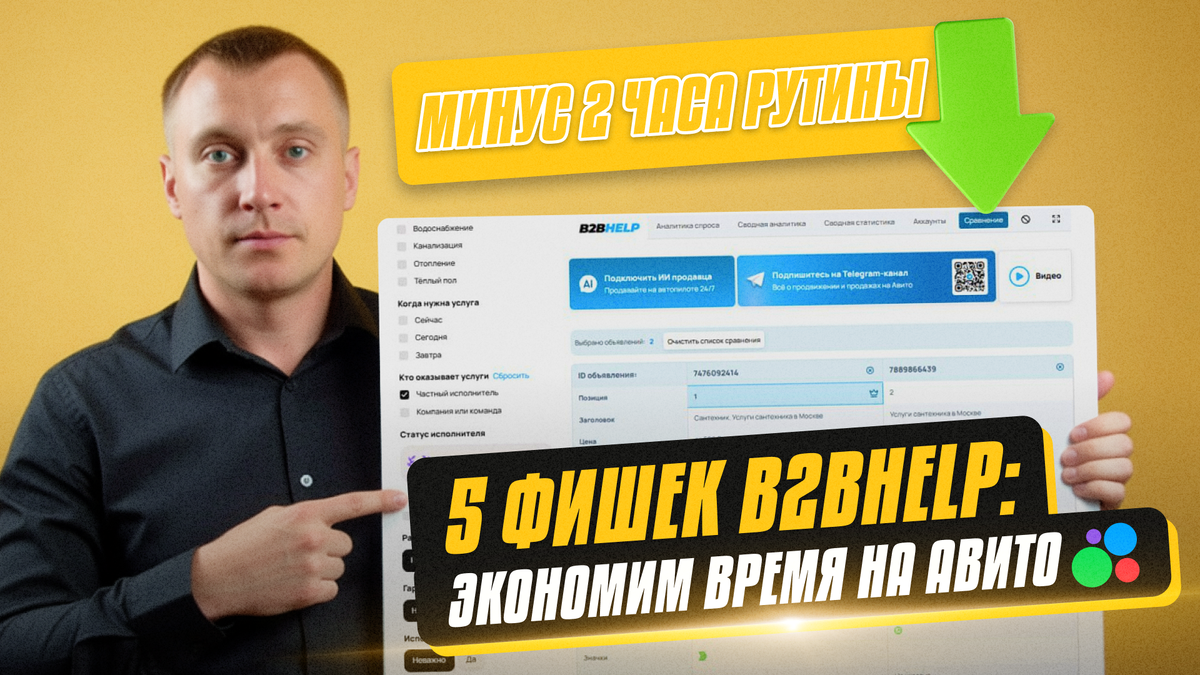 - собрать статистику. Каждая из этих задач сама по себе занимает 5–10 минут. Но в сумме они легко превращаются в несколько часов в неделю. Меня зовут Иван Ларцев. Я работаю с Авито с 2015 года и развиваю платформу B2BHELP (80 000+ пользователей). И за эти годы я заметил одну закономерность. Большинство продавцов на Авито теряют время не на стратегию и продажи, а на рутину. Разберём 5 функций, которые помогают эту рутину сильно сократить. ⚙️ Когда предприниматель только начинает работать с Авито, всё кажется простым. Несколько объявлений.
