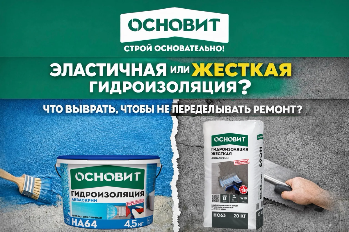 Влага — одна из главных причин разрушения строительных конструкций. Она проникает в бетон, вызывает появление трещин, плесени и постепенно портит отделку. Поэтому гидроизоляция — обязательный этап практически любого ремонта или строительства. Но здесь возникает важный вопрос: какую выбрать — эластичную или жёсткую? Ошибка в этом выборе может привести к тому, что через несколько лет покрытие растрескается и защиту придётся делать заново. Разберёмся, чем отличаются эти виды гидроизоляции и где применять каждый из них. Почему тип гидроизоляции имеет значение На практике многие проблемы с защитой от влаги возникают не из-за качества материалов, а из-за неправильно выбранного типа гидроизоляции. Например: