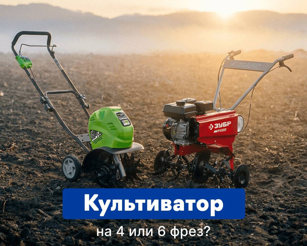 Но очень многое зависит от количества фрез. Фрезы — это «рабочие зубы» культиватора. Чем их больше — тем шире захват и тем сильнее нагрузка на двигатель. Культиватор на 4 фрезы: * легче по весу * проще в управлении * манёвреннее на узких грядках * меньше нагружает двигатель Он отлично подходит для небольших участков на 6-8 соток, где почва уже мягкая, ежегодно обрабатывается, в ней нет тяжелой глины и если это не целина. Для ухоженной земли 4 фрез хватает с головой. Культиватор спокойно пройдёт грядками, в теплицы, междурядья. Культиватор на 6 фрез: * шире захватывает полосу * увереннее заходит в землю * лучше держится на плотной почве * меньше «прыгает» Особенно это заметно на юге. В Краснодарском крае и Ростовской области часто встречается плотный чернозём, глина, земля, которая за лето превращается в «бетон». На такой почве 4 фрезы иногда просто крутятся сверху, а 6 — уже начинают работать в глубину. Нагрузка на двигатель выше, но земля обрабатывается быстрее. ⚖ 6 фрез — э