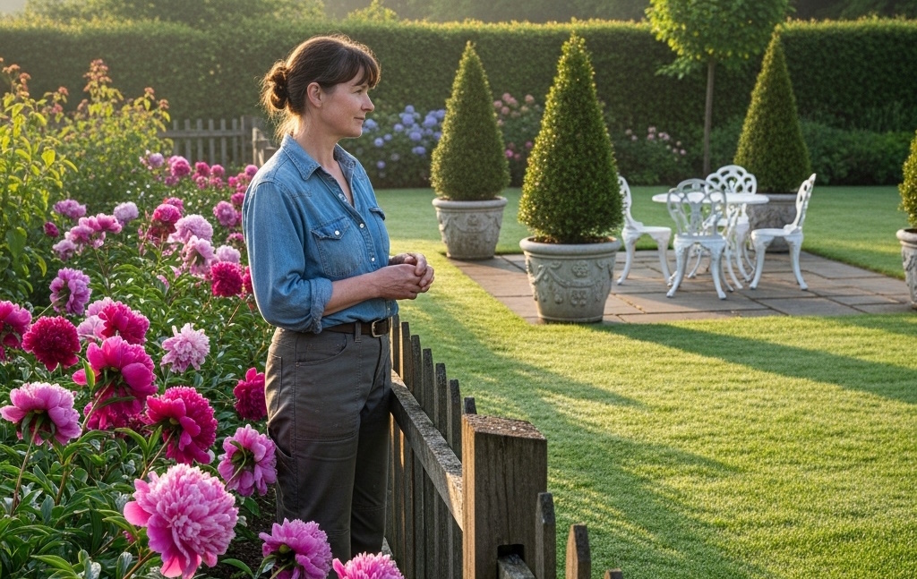 Через месяц участок Инессы выглядел как фотография из журнала. Газон лежал ровный, яркий. Вдоль дорожки стояли шары из самшита, одинаковые, будто отлитые. Появились светильники на солнечных батареях — вечером они загорались голубым. Людмила видела это из кухни. Иногда Инесса выходила вечером с бокалом, садилась в плетёное кресло и сидела. Одна. Без телефона, без книги. Просто сидела. Людмила подумала тогда: одинокая. Потом подумала: как и я. Потом закрыла штору.