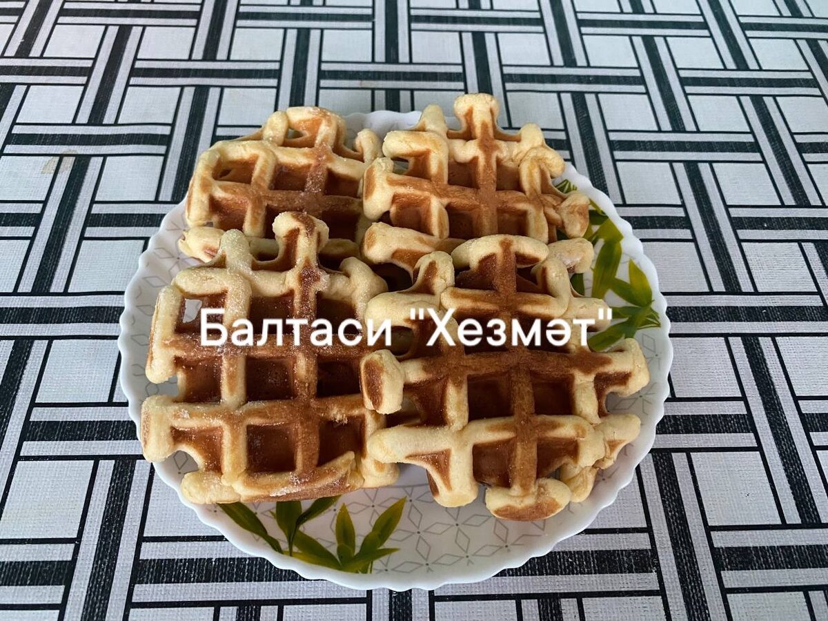 Кирәк булачак: Он-150 г Сөт- 0,5 стакан Йомырка −2 шт. Песок −70 г Сыер мае- 100г Разрыхлитель-1 чәй кашыгы Иң беренче сыер маен кайнар сулы савытка утыртып эретеп алабыз (водяная баня). Аннары песок һәм йомырканы дә салып, күбекләнгәнче миксер белән туглыйбыз. Разрыхлительне онга кушабыз һәм әзер массага иләп салабыз, әкрен генә агызып җылы сөтне кушабыз, яхшылап болгатабыз. Әзер камырны вафельницага тиешенчә салып пешерәбез. Тәмле булсын!