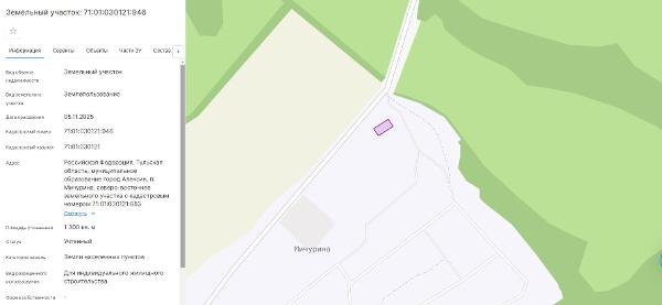Название: Право заключения договора аренды земельного участка из земель населенных пунктов с кадастровым номером 71:01:030121:946, площадь
