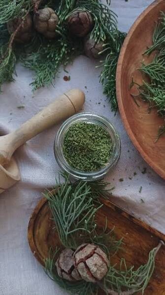 ✅сушеная хвоя сосны, ели или кедра (лучше всего смесь всех трех);